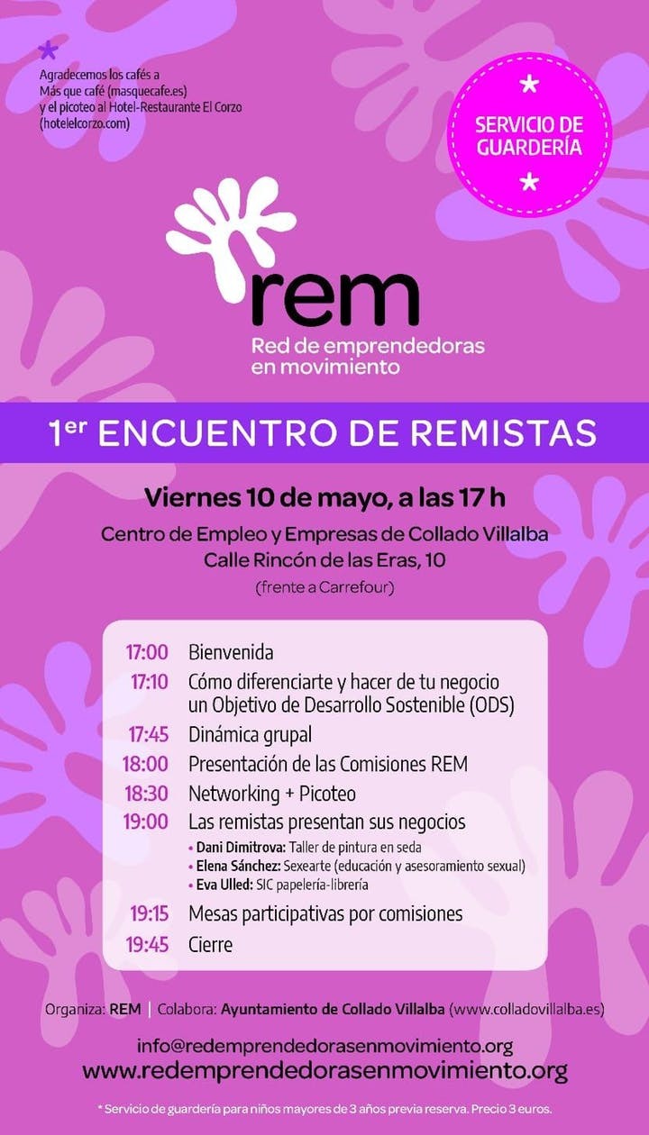 El evento será también una oportunidad para que la Red presente sus comisiones de trabajo y los diferentes tipos de formaciones que van a ofrecer. Además, algunas remistas presentarán su negocio en las áreas de pintura en seda, educación y asesoramiento sexual y papelería-librería.